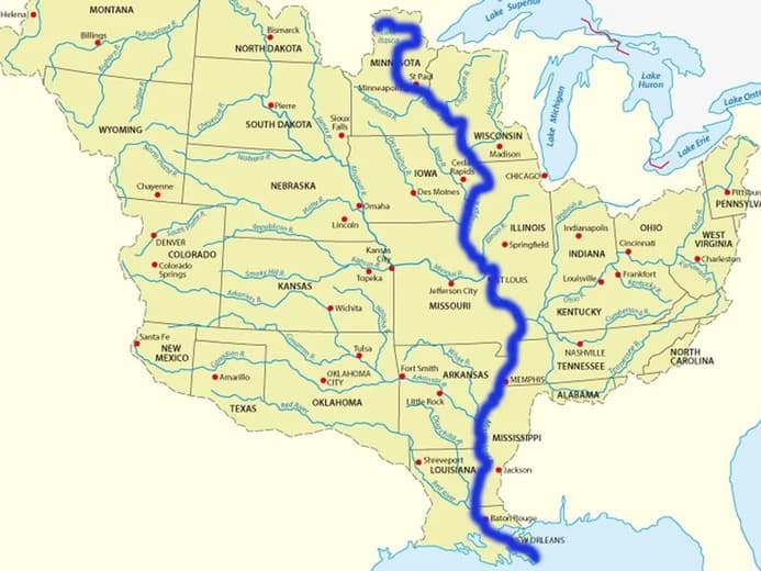 Sistemul râului Mississippi este habitatul principal.